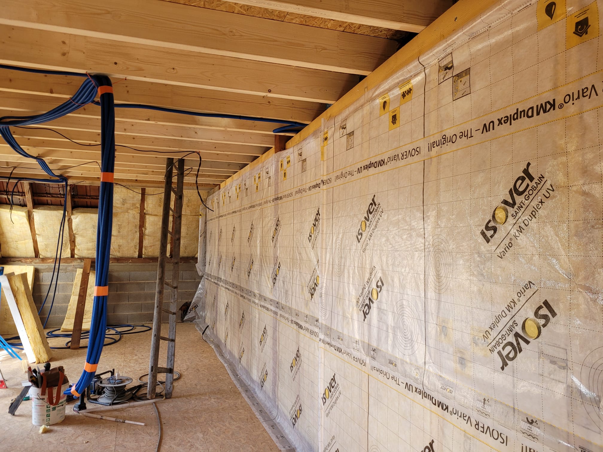 Notre approche est rigoureuse : diagnostic précis des parois, choix des matériaux adaptés (laine minérale, panneaux rigides, doublage isolant) et mise en œuvre soignée pour limiter les déperditions de chaleur et améliorer l’isolation acoustique.